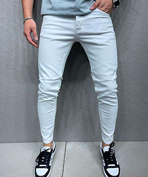 Белые молодежные зауженные джинсы D-641