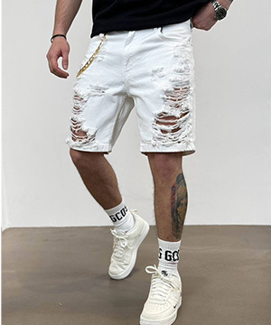 Белые мужские рваные джинсовые шорты с дырками С-590