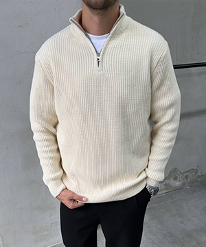 Бежевая мужская вязаная кофта с молнией под шею Т-1306