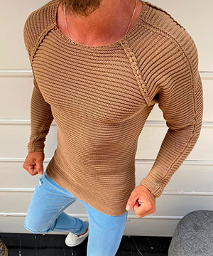 Бежевый мужской свитер с широким горлом Т-406