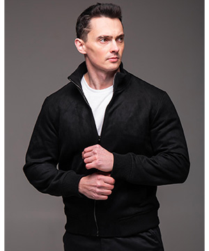 Черная мужская замшевая куртка бобмер воротник стойка К-1578