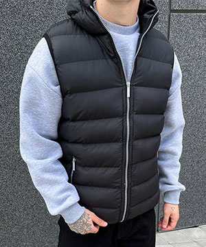 Черная мужская жилетка с серой молнией и капюшоном К-815