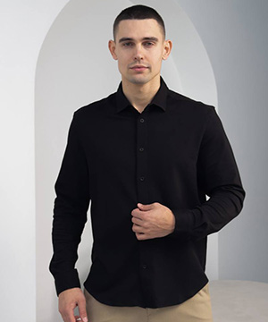 Черная стильная рубашка с длинным рукавом из текстурной ткани Р-1538