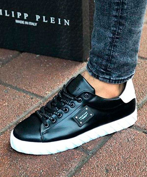 Черные кожаные мужские кроссовки Plein с белой подошвой Т-283