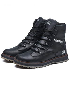 Черные кожаные высокие зимние ботинки Cat с мехом Т-1021