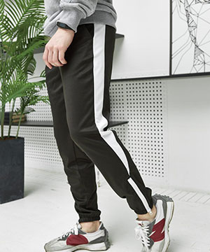 Черные спортивные штаны с белой вставкой сбоку Б-329