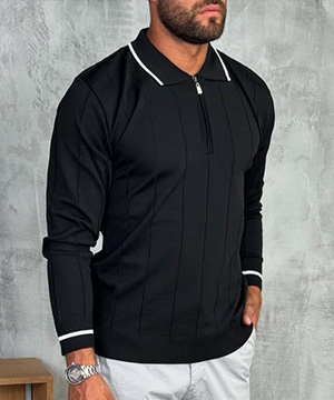 Черный стильный легкий джемпер с молнией под шею Т-1311