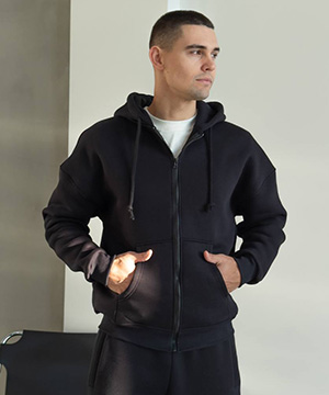 Черный теплый спортивный костюм с кофтой на молнии и капюшоном К-982
