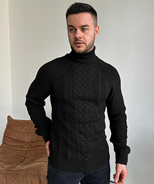 Черный вязаный мужской свитер на осень зиму под горло Т-1327