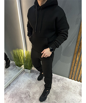 Черный зимний качественный мужской спортивный костюм на флисе с капюшоном К-980