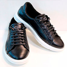 Черные кожаные мужские кроссовки Gucci черного цвета с массивной белой подошвой. Такая обувь станет замечательным дополнением молодежного гардероба, она имеет очень современный, оригинальный стиль, что в сочетании с высоким качеством делает ее лучшей.