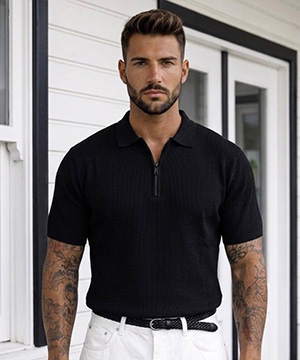 Футболка черная мужская поло на молнии в рубчик Ф-1551