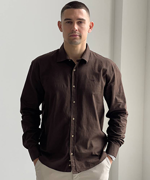 Коричневая мужская льняная рубашка с длинным рукавом Р-1531