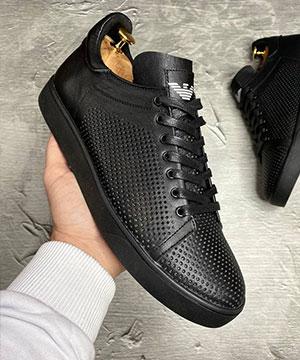 Кожаные мужские кеды Армани с перфорацией Т-391