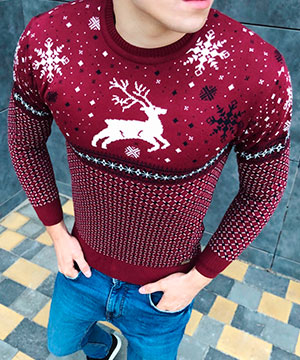 Красный свитер с оленями S-257 купить