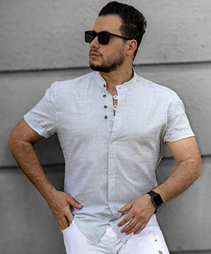 Летняя мужская светлая рубашка с 4 акцентными пуговицами Р-1514
