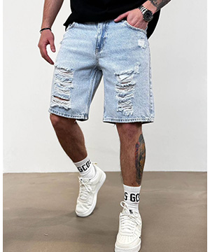 Модные голубые рваные джинсовые шорты свободного кроя С-592