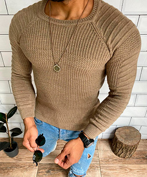 Модный мужской свитер песочно-кофейного цвета Т-388