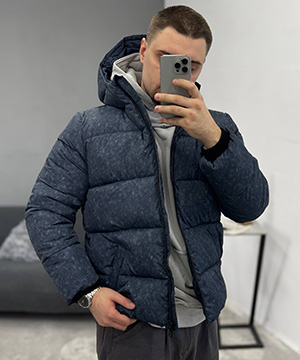 Модный темно синий короткий мужской пуховик К-1517