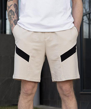 Молодежные бежевые трикотажные шорты с черными вставками С-636