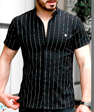 Мужская черная рубашка в полоску с коротким рукавом Р-687