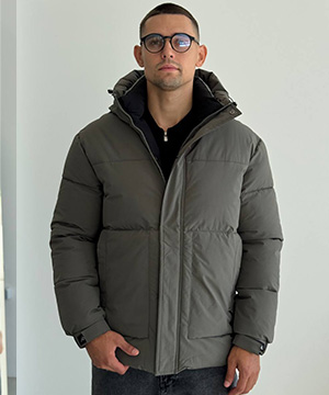 Мужская курточка на евро зиму с капюшоном темный хаки К-1509