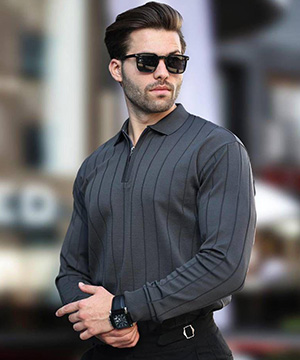 Мужская стильная легкая кофта с молнией под шею в цвете графит Т-1275