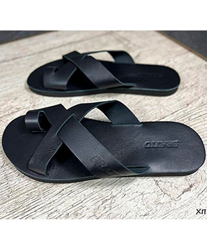 Мужские черные кожаные шлепанцы Bratto Т-628