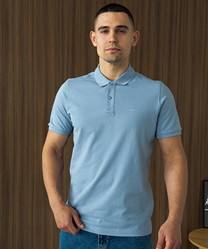 Мужское поло в голубом цвете на 2 пуговицы Ф-1547
