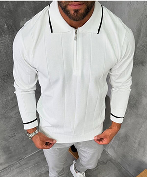 Мужской белый осенний джемпер на молнии под шею Т-1309