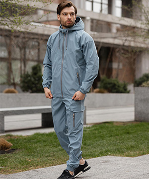 Мужской костюм из водоотталкивающей ткани в голубом цвете К-944