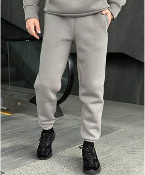 Серые мужские теплые штаны джогеры на осень зиму Б-688