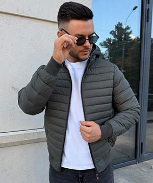 Стеганая мужская демисезонная курточка с капюшоном хаки К-1492