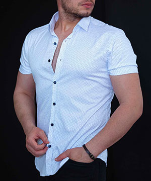 Стильная белая рубашка на пуговицах с коротким рукавом Р-1111