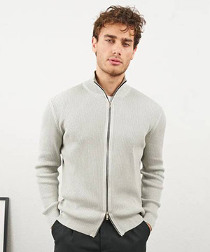 Стильная светло серая мужская кофта в рубчик на молнии Т-1328