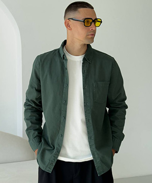Стильная темно зеленая мужская рубашка с длинным рукавом Р-1533