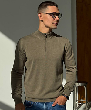Стильный джемпер на молнии в оттенке хаки Т-1303