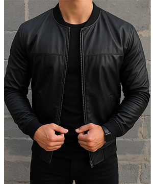 Стильный мужской бомбер из экокожи на осень весну К-1511
