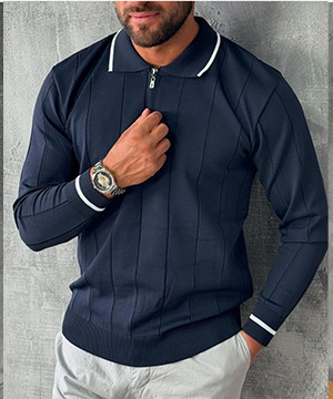 Стильный темно синий легкий джемпер на молнии Т-1308