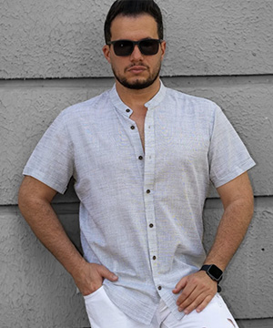 Светлая мужская рубашка с коротким рукавом воротник стойка Р-1522