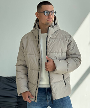Светлая мужская зимняя стеганая куртка с капюшоном до -10 градусов К-1501