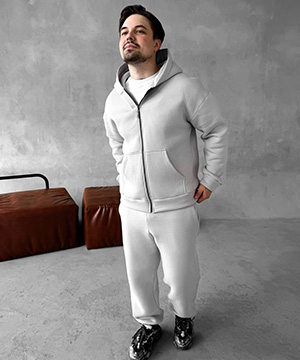 Светло серый теплый спортивный костюм на флисе на молнии К-963