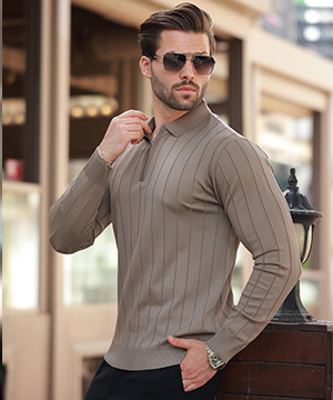 Темно бежевый мужской трикотажный джемпер с молнией под шею Т-1274