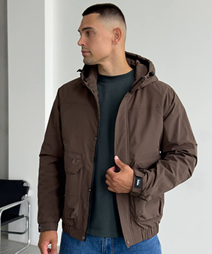 Темно коричневая куртка осень весна с капюшоном К-1456