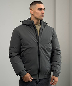 Темно серая мужская зимняя куртка с капюшоном до -10 градусов К-1524