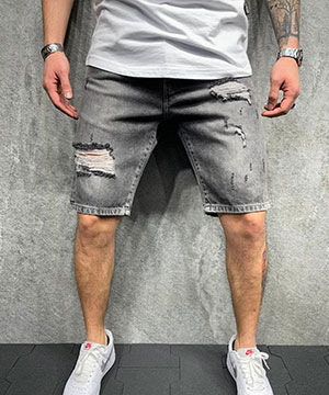 Темно серые мужские джинсовые рваные шорты с дырками С-316