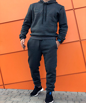 Темно серый мужской спортивный костюм с начесом EA7 К-273