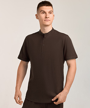Темно шоколадная летняя рубашка с коротким рукавом Р-1529
