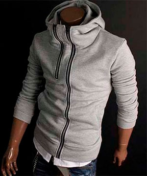 Теплая серая толстовка из натурального хлопка и полиэстра с теплым капюшоном и объемной горловиной. Её можно надевать, как самостоятельный атрибут верхней одежды, и также комбинировать с курткой или пуховиком. Яркий элемент толстовки - две молнии, которые привлекают к себе внимание.