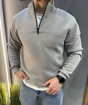 Теплый мужской серый свитшот стойка на флисе с молнией Т-1342